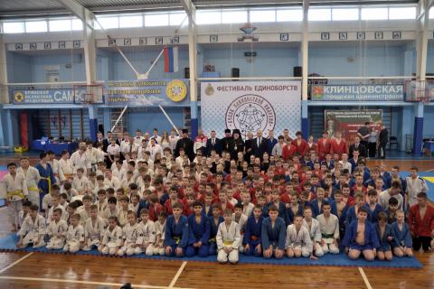 В Клинцах в спортивном зале физкультурно-оздоровительного комплекса «Солнечный» состоялся X фестиваль единоборств. Масштабное спортивное мероприятие собрало около 300 юных борцов 5-17 лет из разных городов Брянщины, которые соревновались в трех дисциплинах за Кубок Клинцовской епархии.