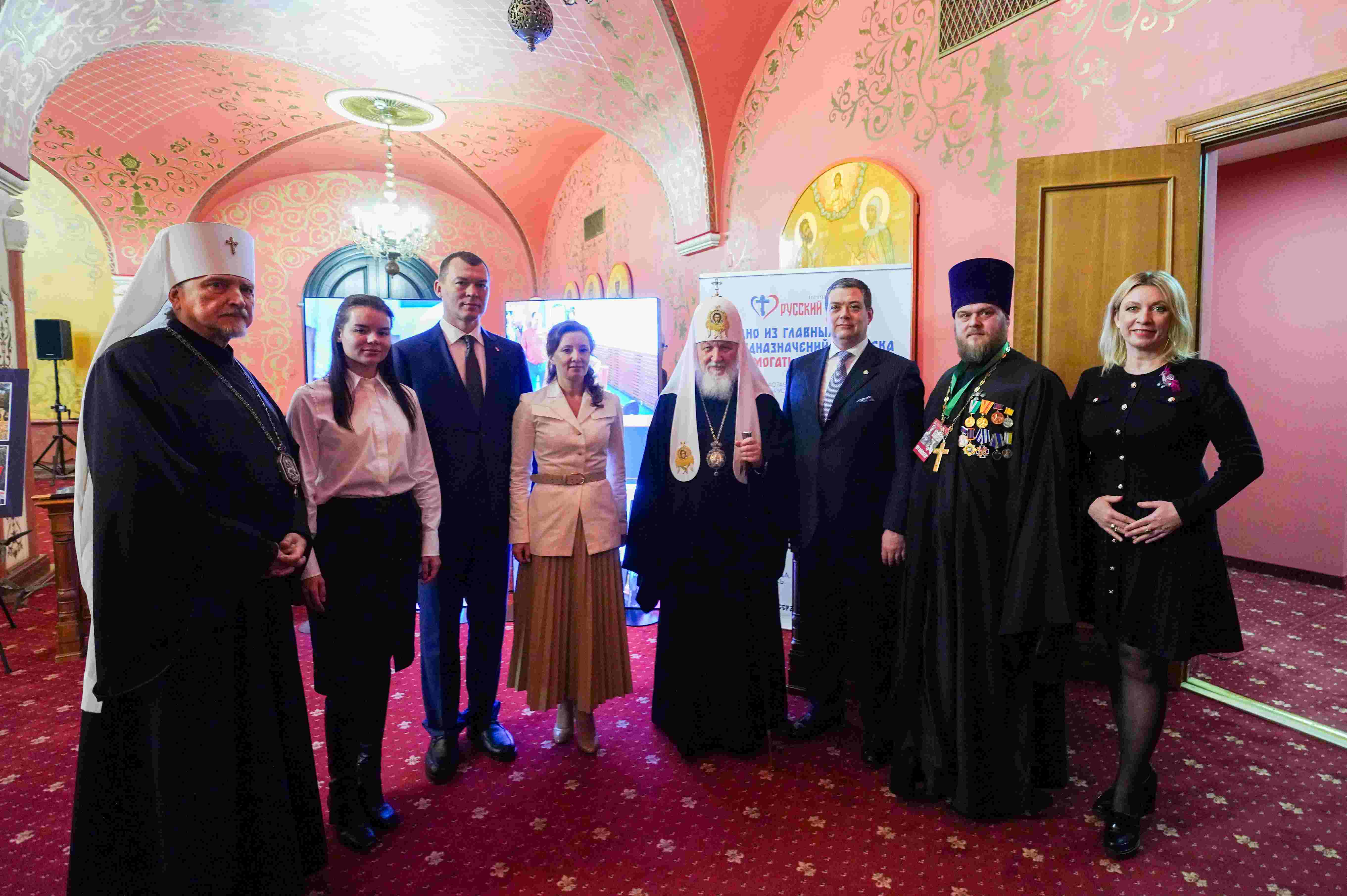 Далее Святейший Патриарх Московский и всея Руси Кирилл проследовал в Зал церковных соборов.