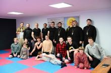 Благочинный г. Азова иеромонах Амвросий (Плахотный) тепло встретил гостей – председателя комиссии по физической культуре и спорту Ростовской-на-Дону епархии иерея Павла Дудоладова и тренера Олега Овчаренко вместе с воспитанниками – и провел для них экскурсию по величественному храму, рассказав об истории строительства собора и находящихся в нем святынях.