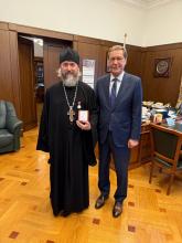 Юбилейную медаль «90 лет обществу «Спартак» в знак многолетней верности клубу и во внимание к трудам по содействию воспитанию подрастающего поколения, в том числе во взаимодействии с Футбольной академией «Спартак», священнослужителю вручил первый заместитель председателя Государственной Думы ФС РФ А.Д. Жуков.