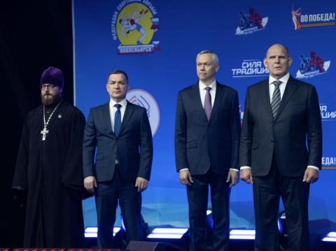 Спортсменов приветствовали губернатор Новосибирской области Андрей Александрович Травников, мэр города Новосибирска Максим Георгиевич Кудрявцев, сенатор Российской Федерации, Герой России, трехкратный Олимпийский чемпион Александр Александрович Карелин, член Патриаршей комиссии по вопросам физической культуры и спорта, руководитель спортивного отдела Новосибирской епархии, мастер спорта России иерей Борис Левитан.
