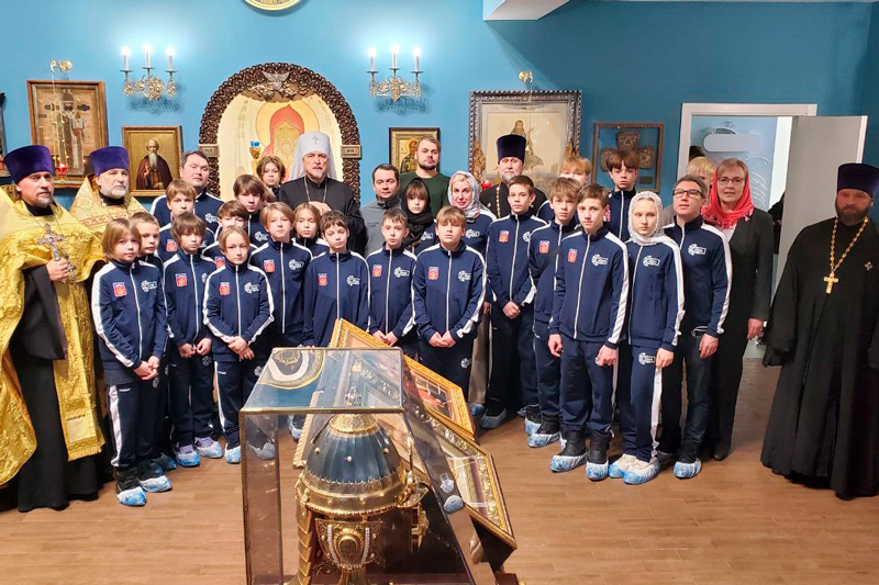 Перед официальной частью в домовой церкви преподобного Варлаама Керетского было совершено молебное пение у мощей святого Александра Невского, пребывающих в мощевике точной копии шлема князя. Святыня отправится вместе со сборной в Санкт-Петербург и будет сопровождать игры. Также с командой поедет присутствовавшая на молебне Феодоровская икона Божией Матери из Кандалакши. Образ, побывавший на пограничных заставах Кандалакшского округа, проследует в Санкт-Петербург вместе с духовным знаменем 80-й арктической бригады.