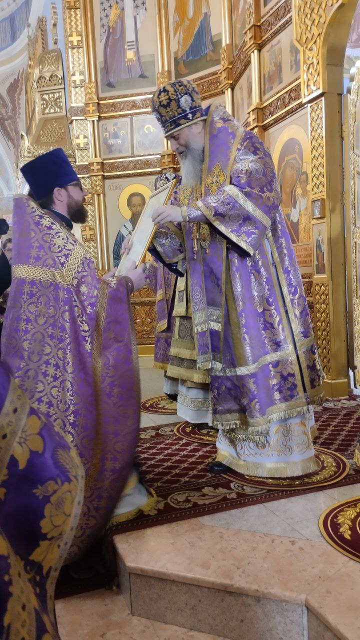 По окончании богослужения митрополит Никодим вручил члену Патриаршей комиссии по вопросам физической культуры и спорта, руководителю спортивного отдела Новосибирской епархии, ключарю Александро-Невского собора иерею Борису Левитану Патриаршую награду.